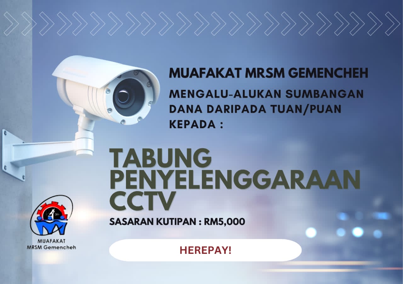 MUAFAKAT MRSM GEMENCHEH mengalu-alukan sumbangan Dana daripada Tuan/Puan utk Tabung Selenggaraan CCTV. sasaran kutipan adalah sebanyak RM 5,000.00