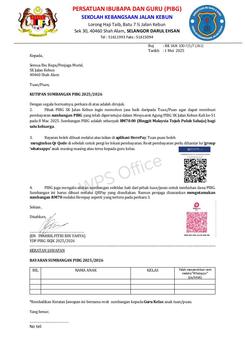 SUMBANGAN PIBG SK JALAN KEBUN 2025/26