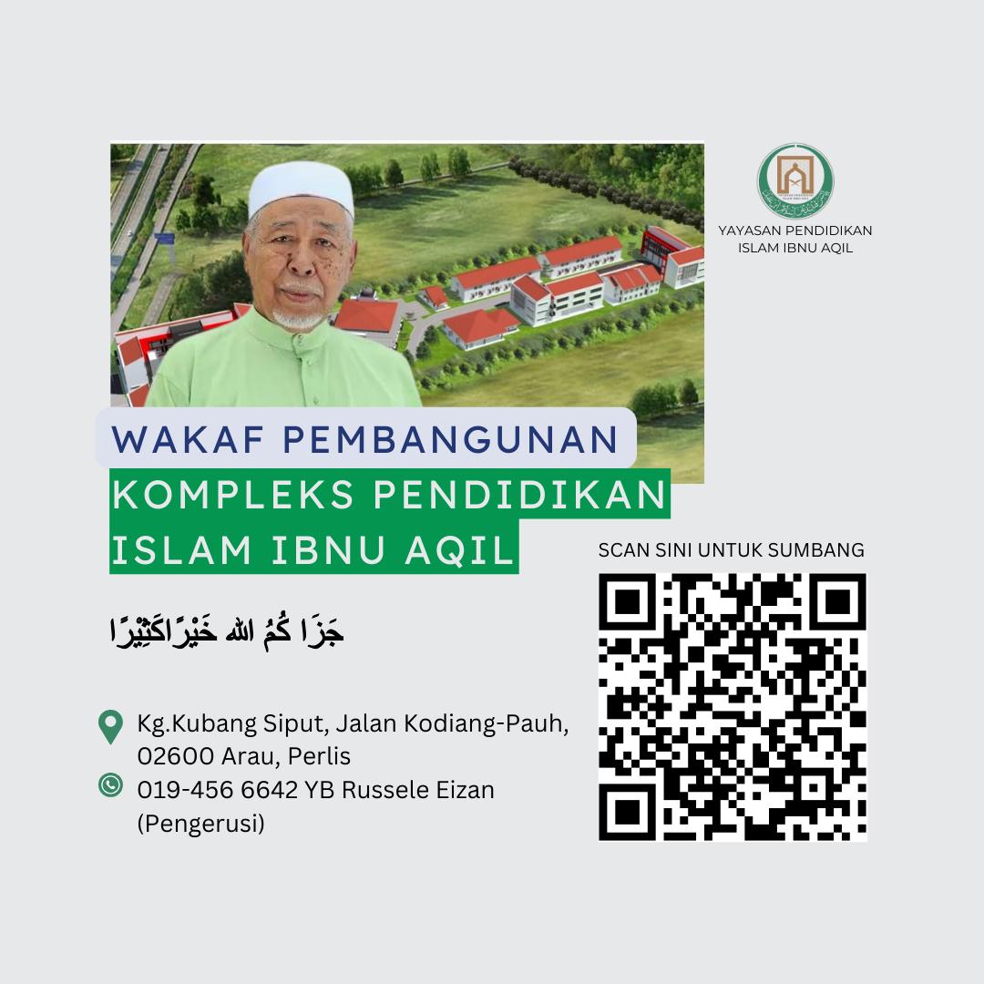KUTIPAN DANA UMUM BAGI PEMBANGUNAN KOMPLEKS PENDIDIKAN IBNU AQIL. Merangkumi pembangunan, 1. musolla ✅ 2. maahad tahfiz✅ 3. sekolah rendah Islam (SRI)(Dalam perancangan) 4. kuarters guru✅ 5. juga pondok moden✅